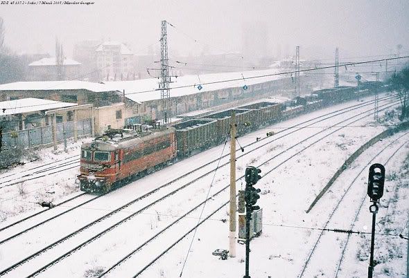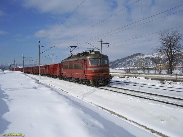 Below an image of another locomotive of the same class, BDZ 45 187, arriviving in the capital Sofia with a freight train during a blizzard, 7 March 2005. Photo by Miroslav Georgiev also from RailFanEurope.