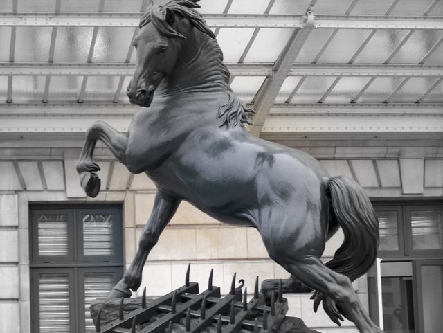 I'll start off with a photo of a well known Place in Paris, which is hard to recognize from the photo, because it's usually filled with people. This photo was taken at 9:30 on a Sunday morning last November. afew will recognize it. In the spirit of this blog it mixes a bit of color on a black and white.