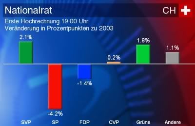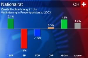 Currently it looks like the SP Ständerätin (Senator) for Basel will be reelected. And it seems the SP took the seat away from the SVP in Baselland - yipee! its the guy I voted for.