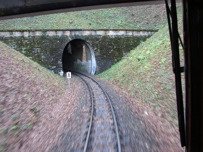 Symbolic: into the 198 m horseshoe tunnel before Hárs-hegy station – and seeing the end of the tunnel