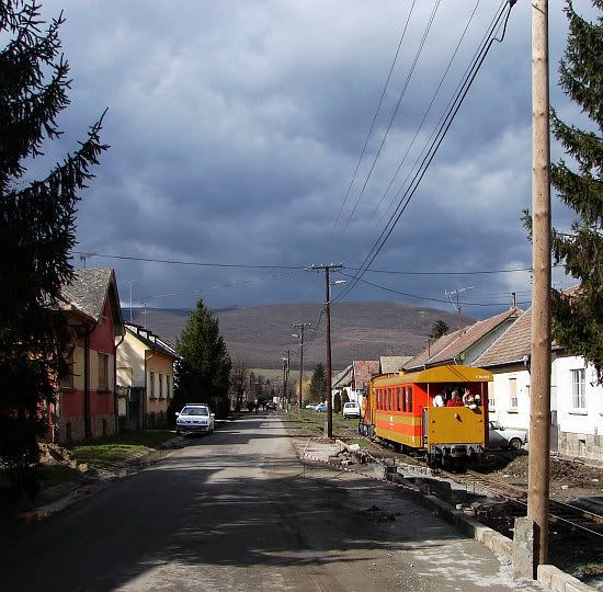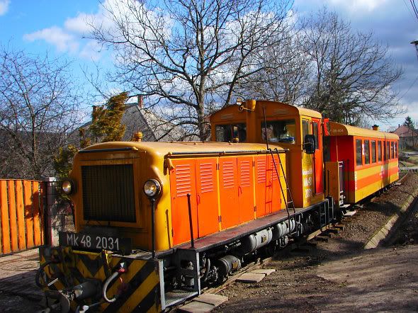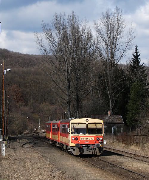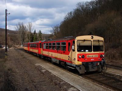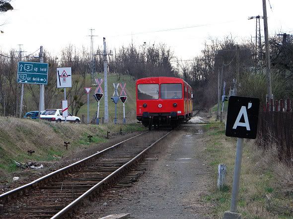 The first leg of the trip is on the mainline to the village Kismaros. There, the single-car train of a narrow-gauge railway (schedule) was stopped extra for our late mainline train. With a maximum speed of 25 km/h yet violently shaking right and left, we travelled on it until Szokolya-Mányoki station.