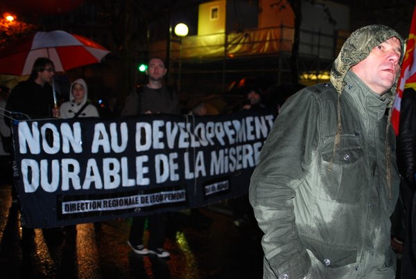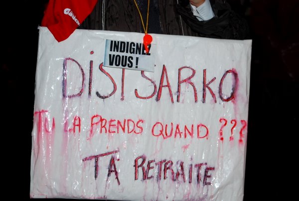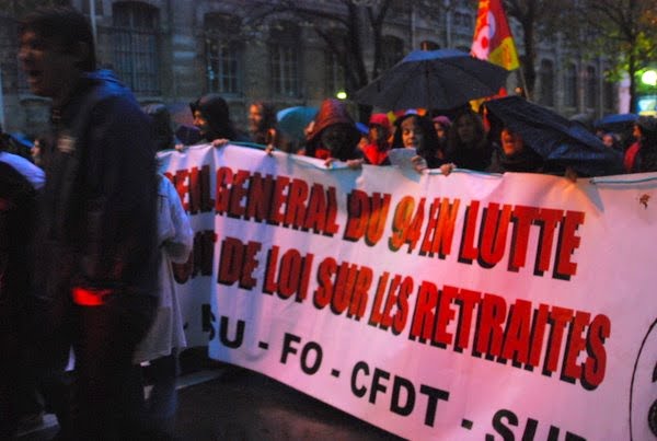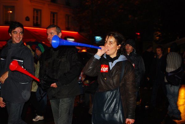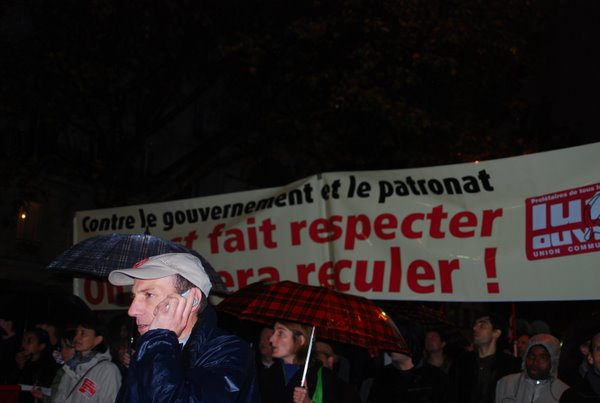 Yesterday we had the eighth street demonstration against Sarkozy's pension reform particularly and the Sarkozy government in general. In Paris, it was considered a washout, (although there were still some fifty or sixty thousand there) partly due to the weather which was continual rain, and also the fact that the law has passed and the stage will move to the political arena. There is also some bickering among the unions, primarily the CGT and the Force Ouvriere. I understand, however, that there were good crowds in Lyon and Toulouse.