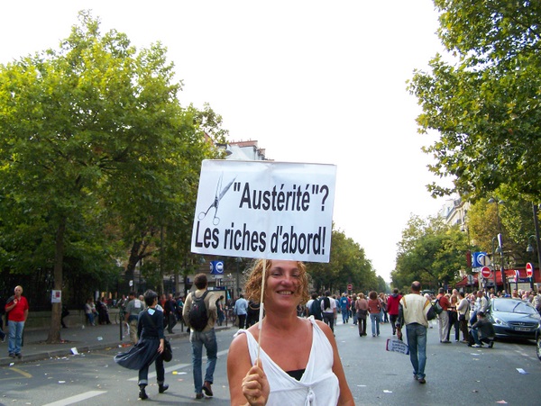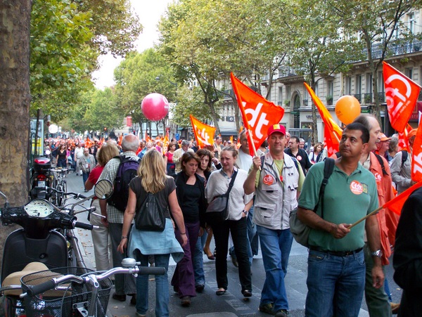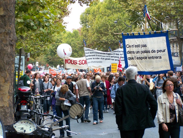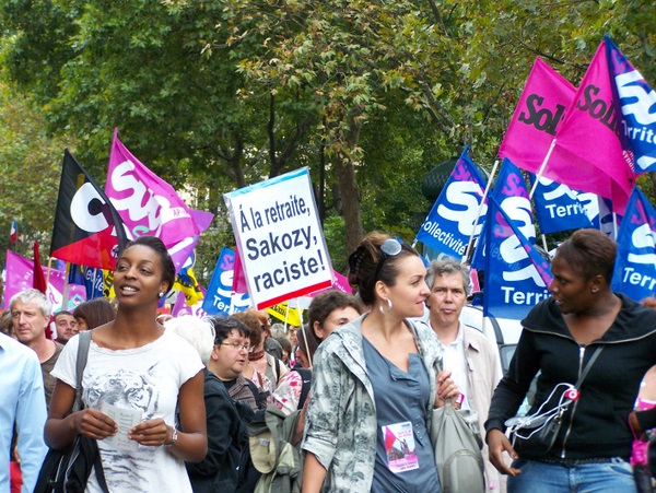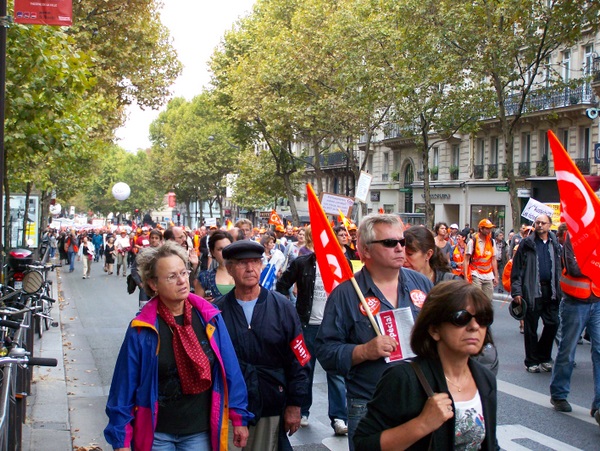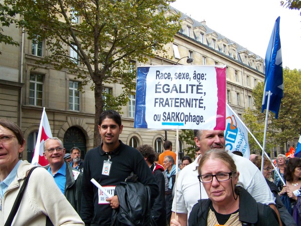 in Paris today. The issue is the government's ramming through a law increasing the minimum retirement age form 60 to 62 and the full retirement age from 65 to 67. Of course, that's the given grevience but more and more of the French are starting to realize just how dangerous Sarko might be.