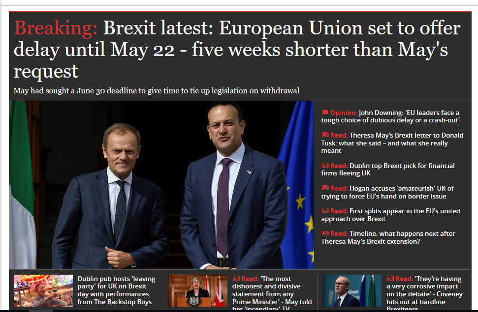 The UK government has requested an extension of the A.50 notification period until June 30th. This creates the awkward situation whereby the UK is still a member of the EU on the 23rd. May, when all members are legally obliged to hold European Parliament elections. It also created problems for EU leaders as the letter requesting the delay came too late for many EU leaders to consult with their parliaments - as they would normally do - before taking a position on it at the EU Council.