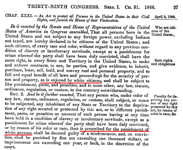 SO. Any officer such as executive, legislator, LE agent, or state licensee who deliberately contravenes US Constitutional law (by statute, ordinance, interdiction, or dereliction) to abridge legal protections afforded citizens expressly coded by the Civil Rights Act of 1866 et seq. and governed by 14th, 15th amdts among others, is engaged in commission of a federal violation, entertaining both civil and criminal codes.